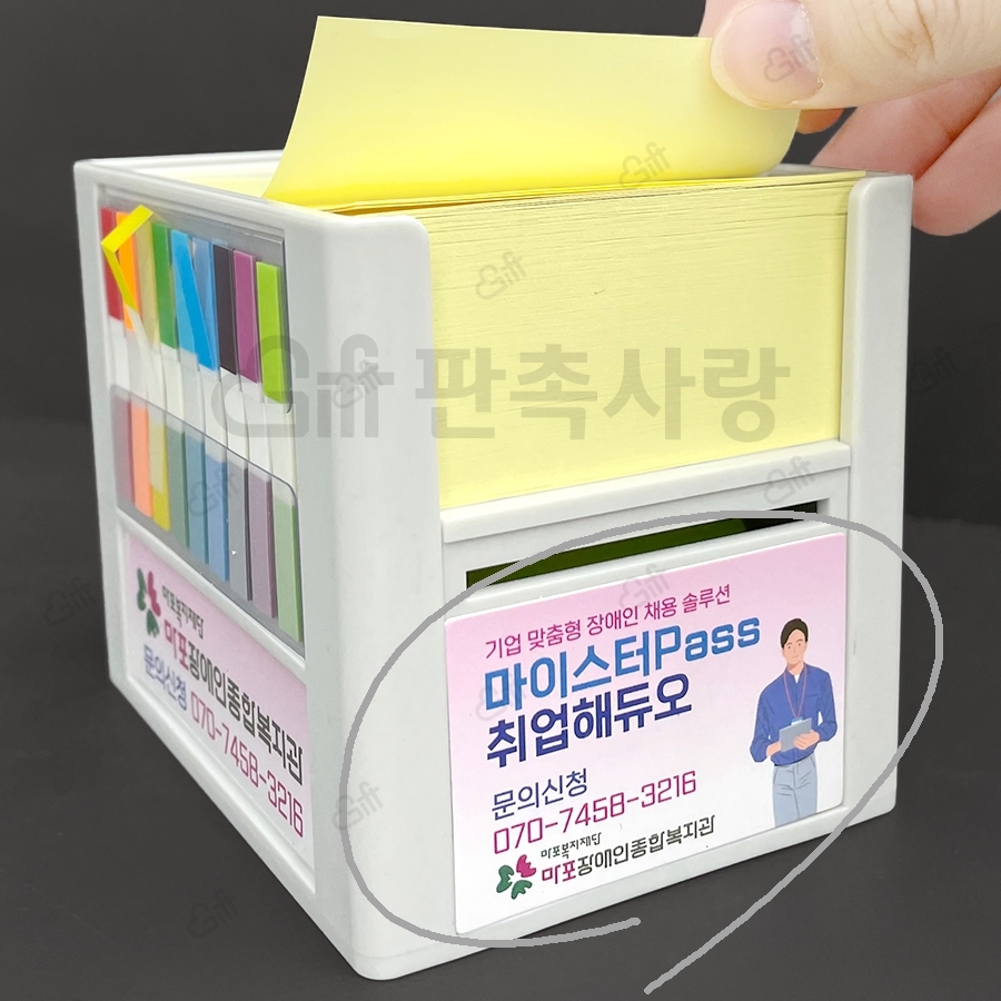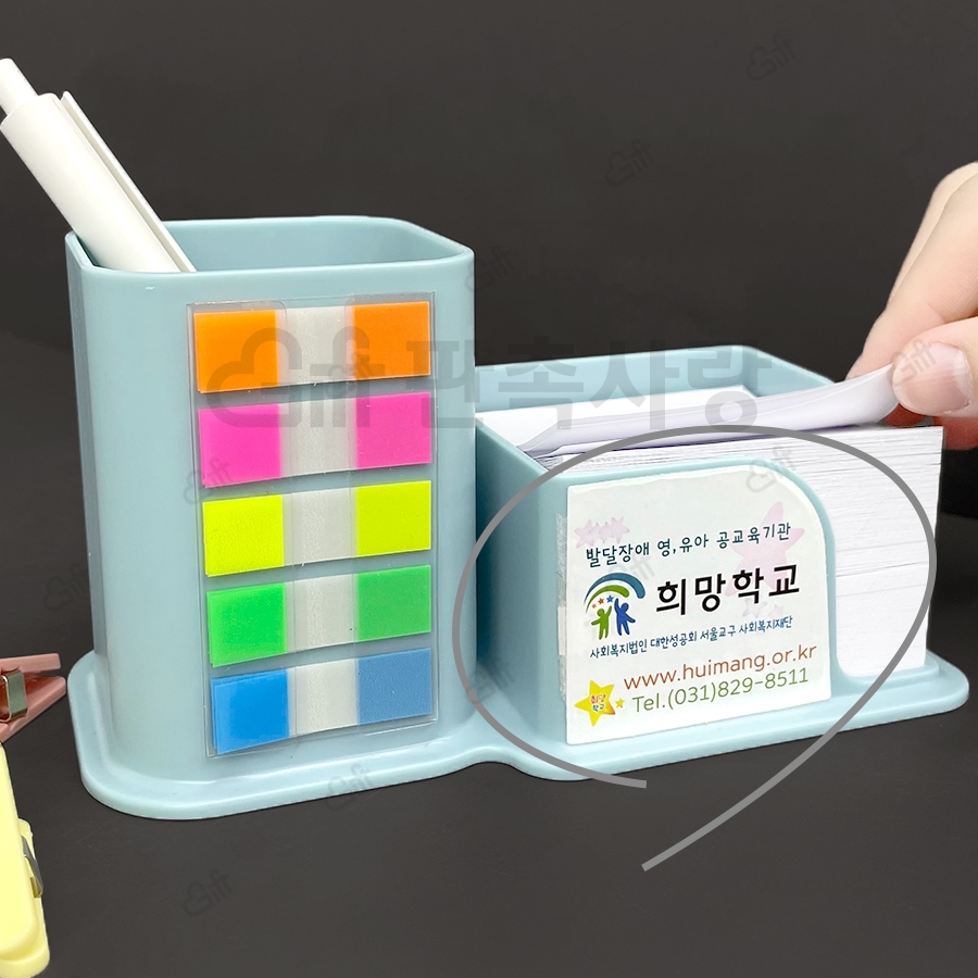 - 펜꽂이 메모함 (펜꽂이 디스펜서) (점착메모지 500매+모서리클립 1P+인덱스필름 (5색 10매))