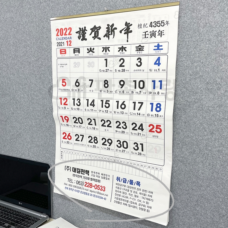 2026년 윤전 2절 숫자판 달력 495x720mm (70g / 100g)