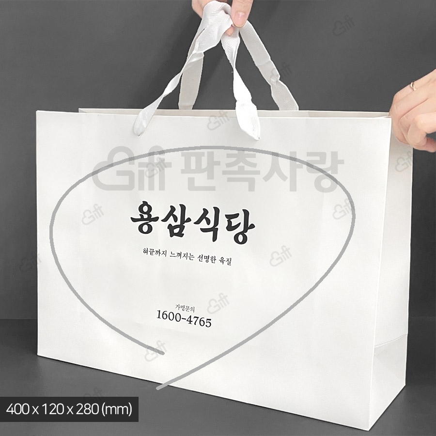 - 화이트 무지 가로 직사각형 쇼핑백 대형 (40x12x28cm) 1P