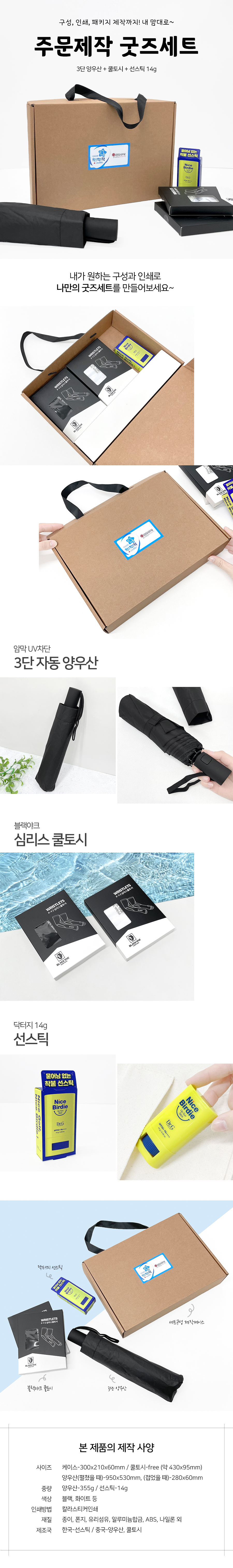 춘천종합사회복지관 행사 선물세트(3단 양우산 + 쿨토시 + 선스틱14g)