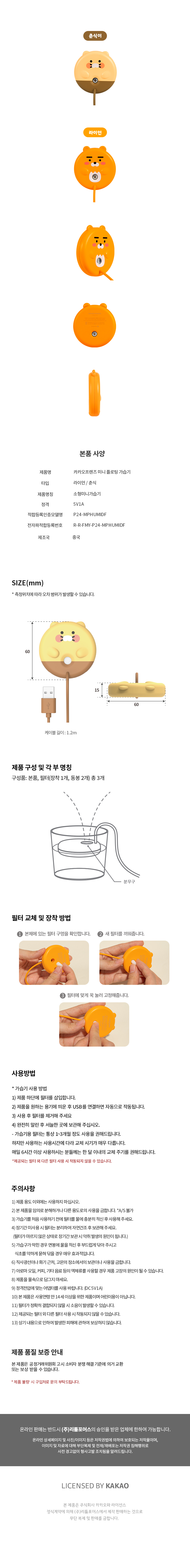 | 제품색상 | 라이언 ,춘식이 |