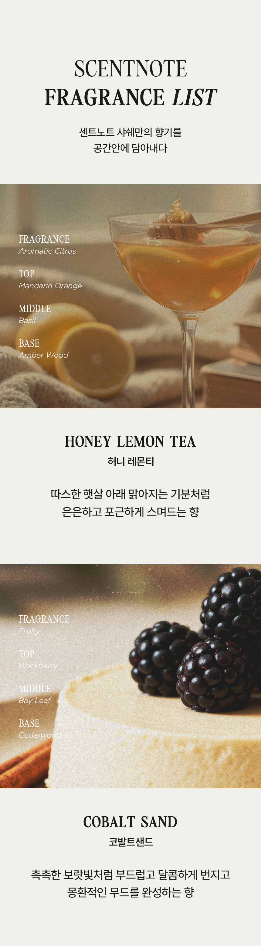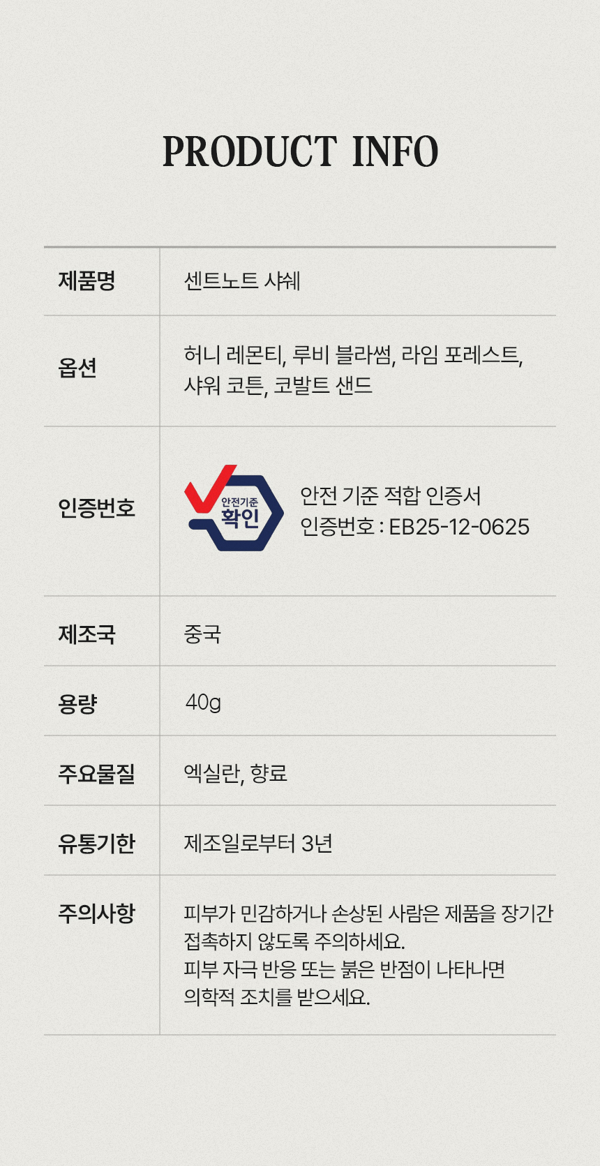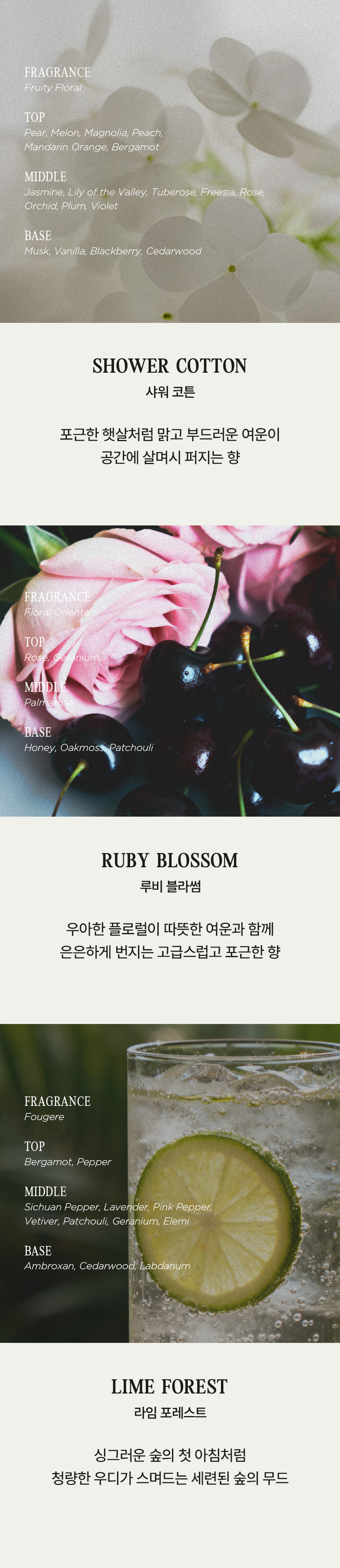 | 제품색상 | 허니 레몬티, 루비 블라썸, 라임 포레스트, 샤워 코튼, 코발트 샌드 |