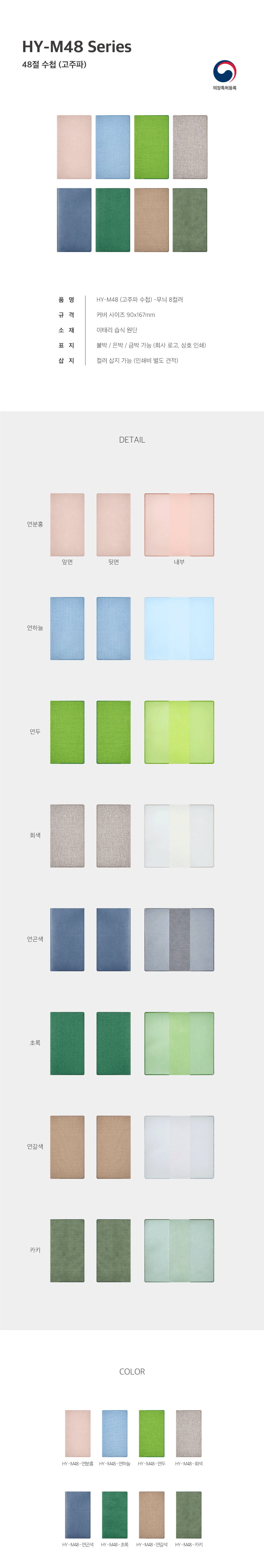 | 제품색상 | 연분홍, 연하늘, 연두, 회색, 연곤색, 초록, 연갈색, 카키 |