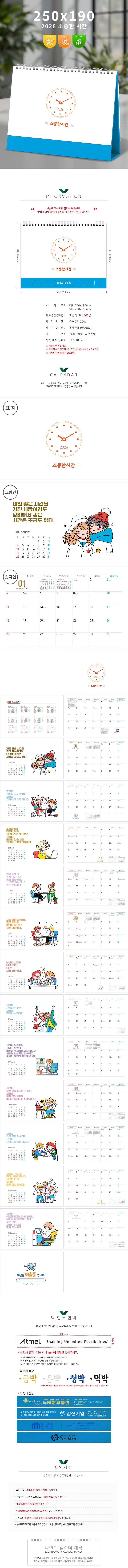 2026년 탁상달력 소중한시간 캘린더 카렌다 (250*190mm) 1P