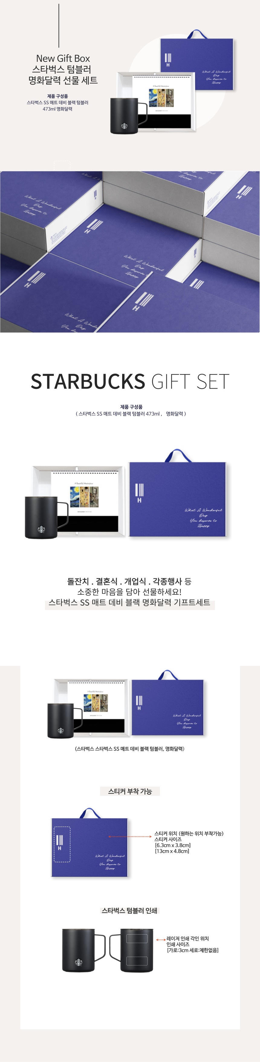 [스타벅스] 매트 데비 텀블러 473ml+2025 명화달력+손잡이 기프트박스 세트