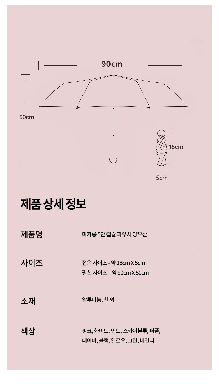 | 제품색상 | 핑크, 화이트, 민트, 스카이블루, 퍼플, 네이비, 블랙, 옐로우, 그린, 버건디 |