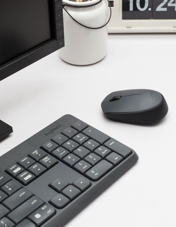 로지텍 무선콤보 MK235와 함께 책상 위 공간을 한층 여유롭게 사용할 수 있습니다.