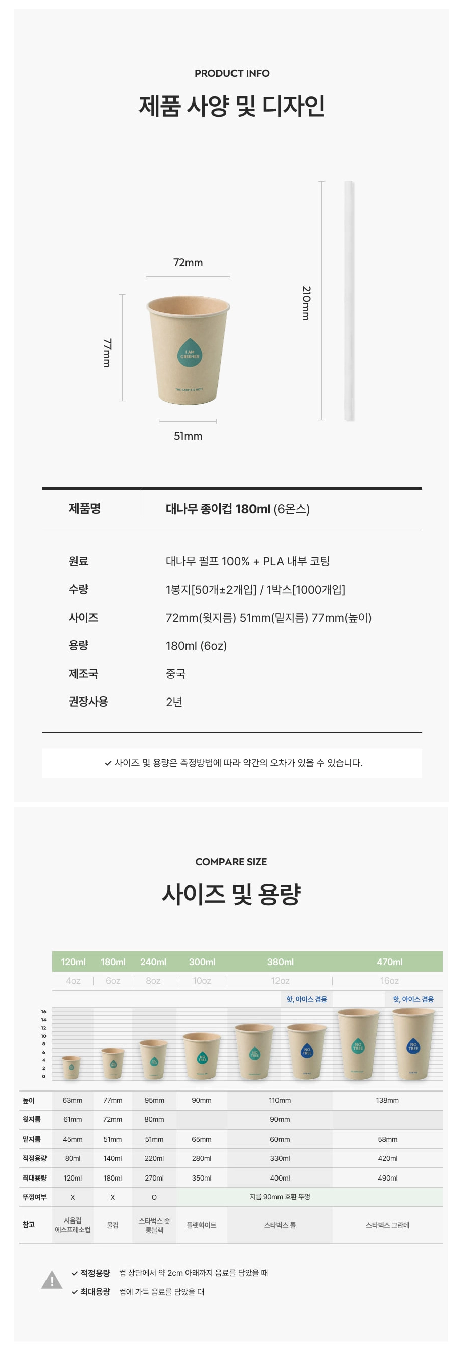 | 제품재질 | 대나무 펄프지, PLA 코팅 |