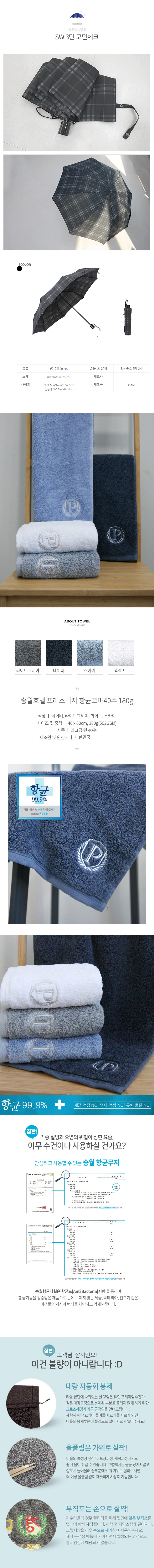 | 제품색상 | 우산:이미지 참조 타월:라이트그레이,네이비,스카이,화이트 |